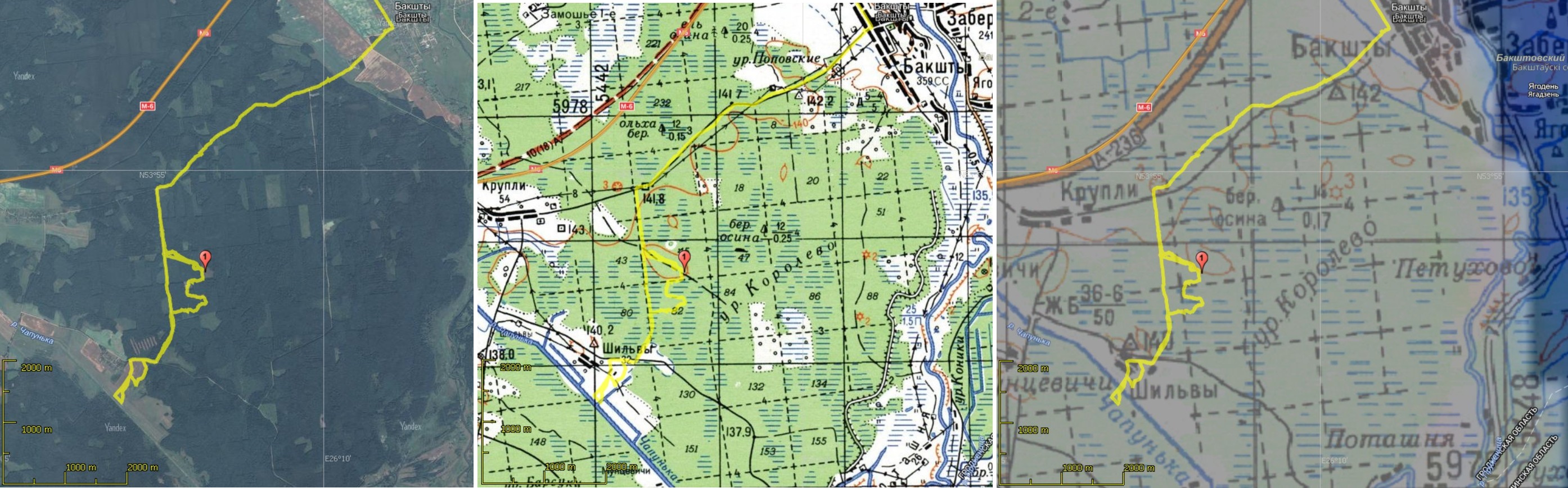 Координаты: 53o 54' 06,4" с.ш., 26o 08' 15,8" в.д., направление: Воложин - Лида, расстояние от Минска 93 км.