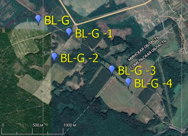 В ходе выезда были разведаня три запасные поля. Карта новых полей ("BL-G -1", "BL-G -2", "BL-G -3" и "BL-G -4") показана ниже.