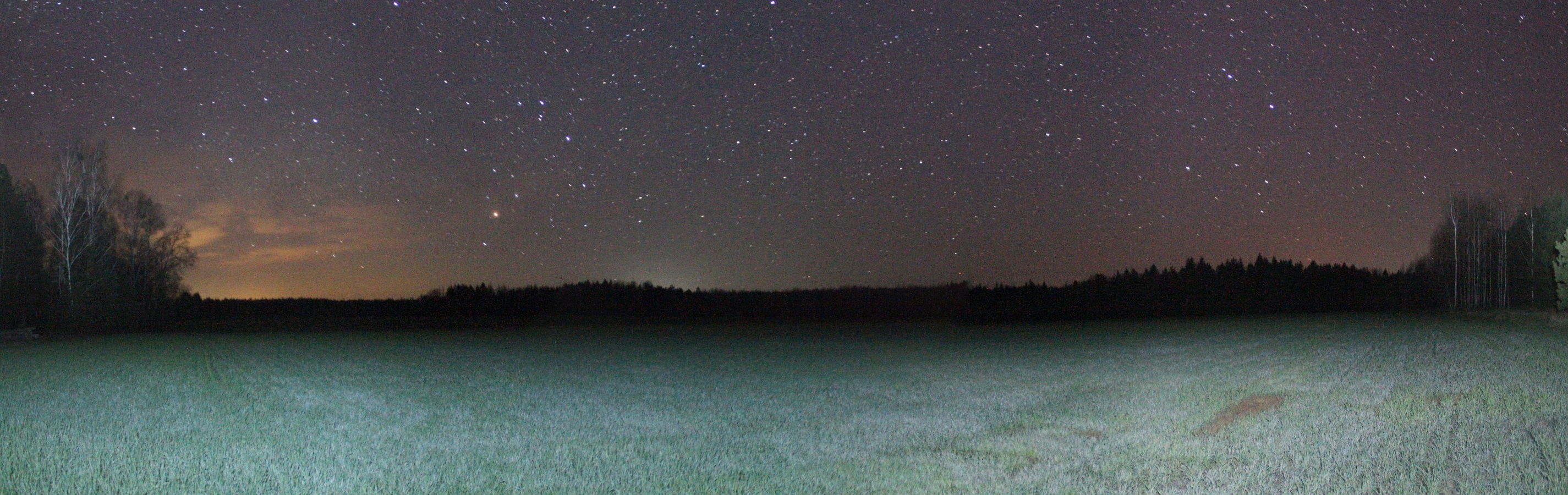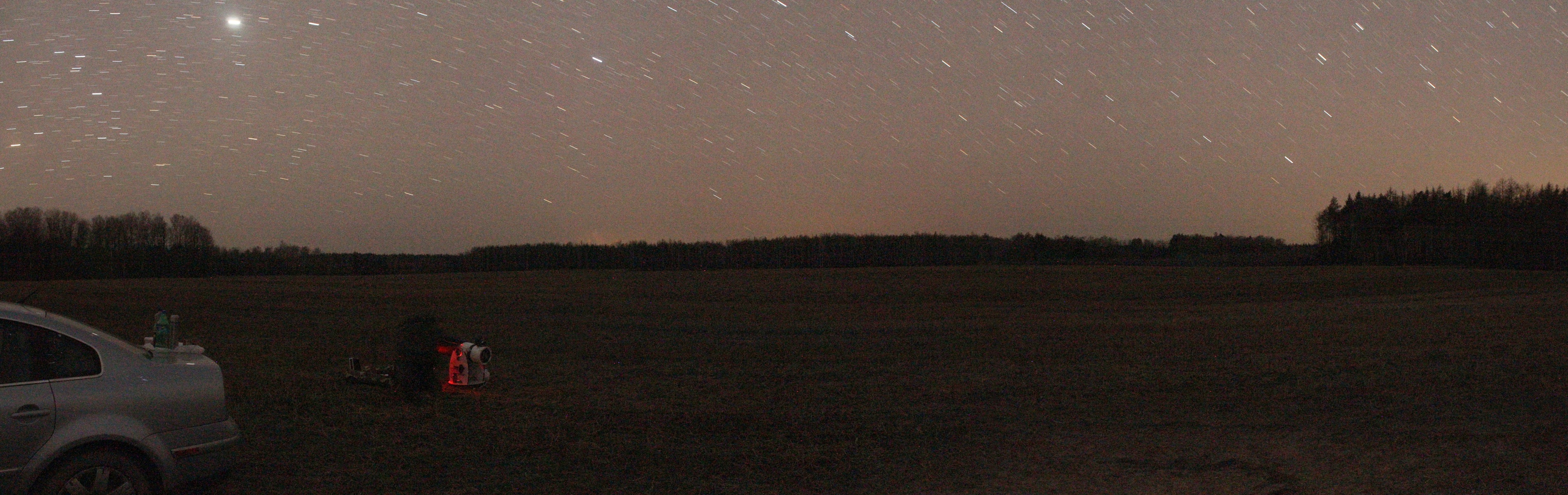 Засветка: Уровень засветки в зените 22,10m/"2(показания SQM-L, 23.04.2020) в точке 52o 30' 47.6"N, 28o 20' 59.9"E. |