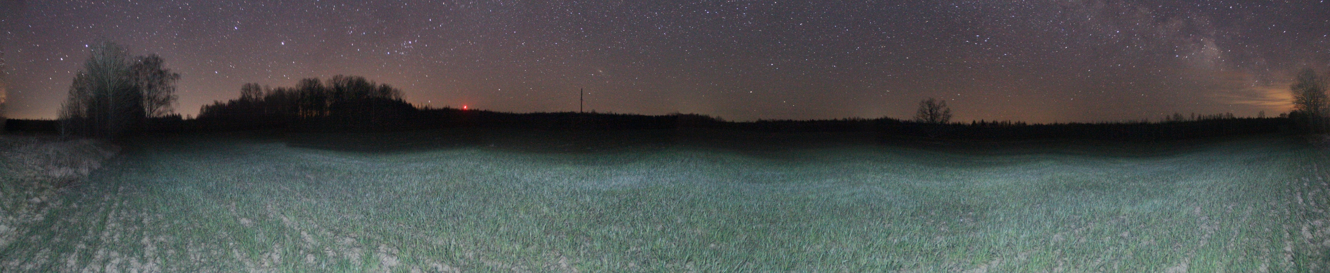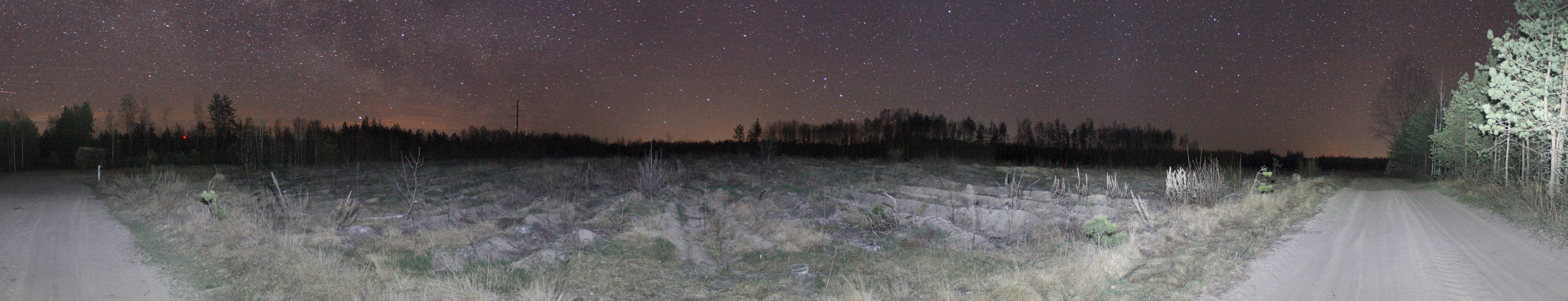 Засветка: Уровень засветки в зените 22,09m/"2(показания SQM-L, 23.04.2020) в точке 52o 31' 03.0"N, 28o 20' 17.9"E. |
