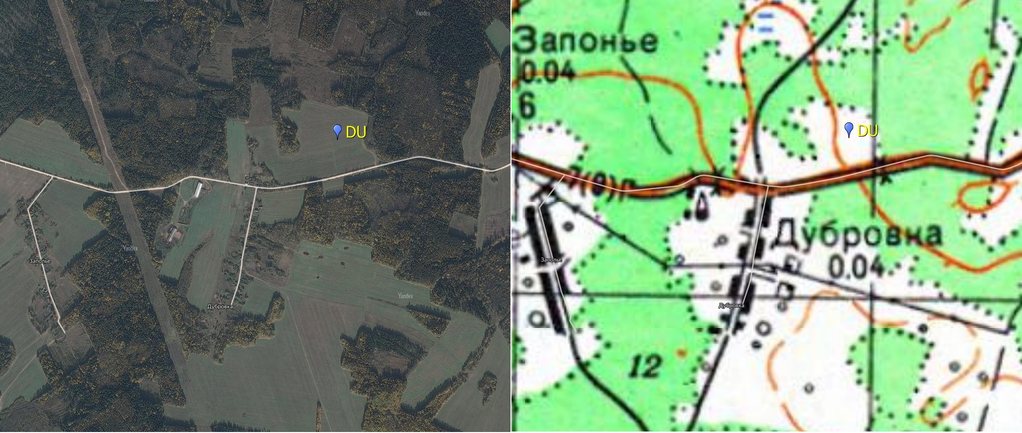 Наблюдательная площадка DU была разведана в ходе выезда 22-23 ноября 2019 г. на разведку площадок на холмах южнее Докшиц. Площадка находится в 10 км западнее трассы М3, севернее д. Дубровка Докшицкого р-на Витебской обл.