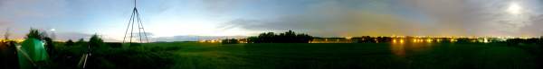 Ниже приведена панорама 200° площадки Novinki с точки "высота 234,2 м" (высота находится в 300 м южнее отмеченного на первом рисунке круга). Панорама получена Русланом Завадичем (Sidewinder) в ходе тестового выезда 3 июня 2012 г., посвящённого предстоящему транзиту Венеры по диску Солнца 6 июня 2012 г. Север -- за "треногой" геодезического знака в левой части панорамы, на юге видна полнаю Луна за пеленой облаков (справа вверху).