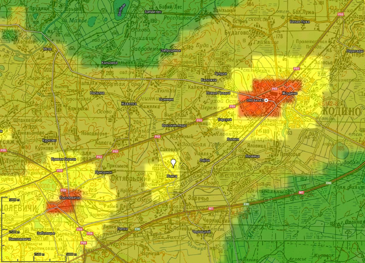 Если продолжать движение по шоссе мимо кладбища, то за ним есть большое поле, которое может оказаться удобнее для наблюдений. Но на нём есть сеть мелиоративных каналов, т.е. влажность там выше. На юг за деревней Красное знамя протекает речка Плисса.