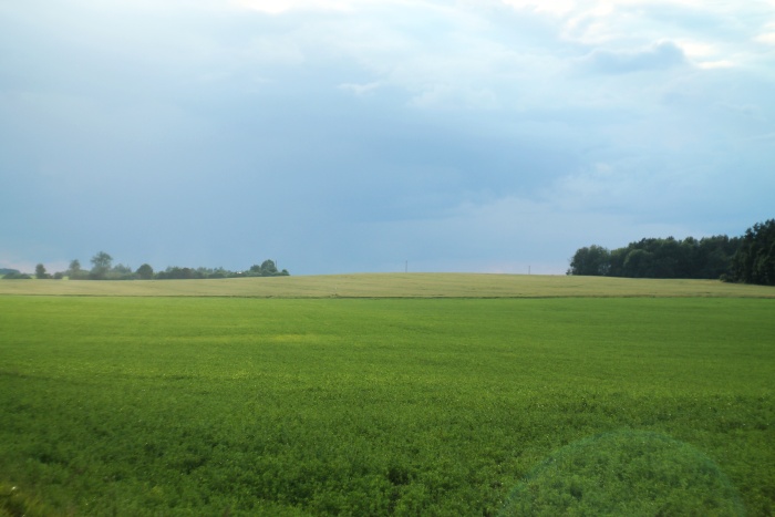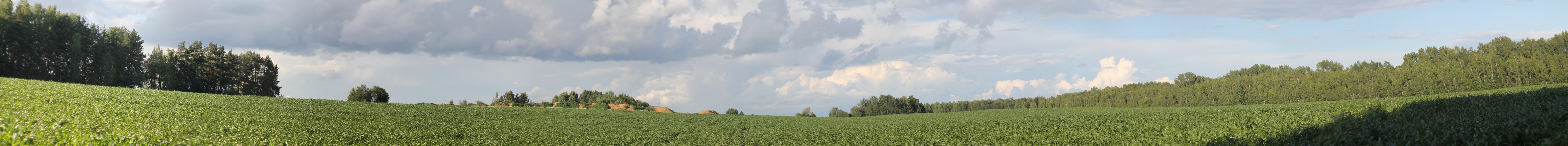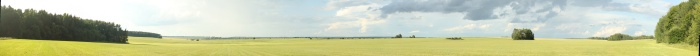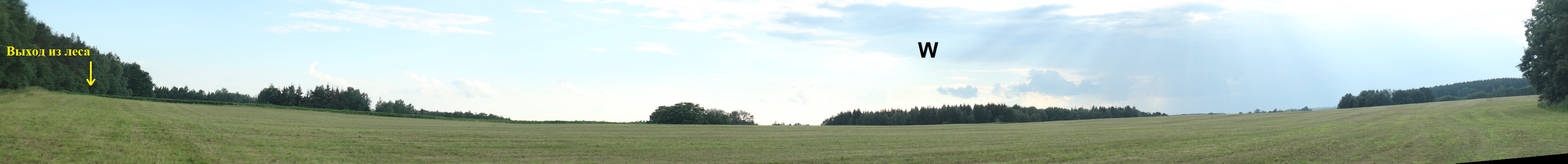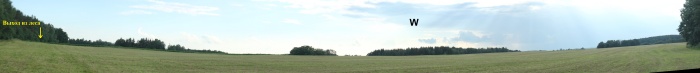 Пройдя по ней через лес 800 м, выходим в первое поле, панорама которого приведена ниже (взгляд с юго-восточной его границы).