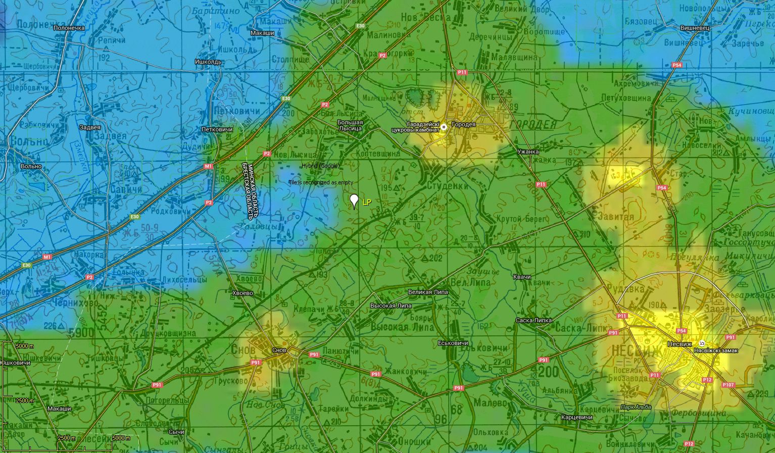 Выйдя на станции Липа, нужно пройти около 500 м по направлению к Минску (против хода движения) вдоль ж/д полотна. Слева и справа будет лес на пригорках. Затем нужно взобраться на левый пригорок, пройти сквозь густой лес и выйти в поле. Это и будет LP. Место высокое, относительно сухое, уровень засветки Городеи, Несвижа и Барановичей не очень высок. Ниже приведена его панорама (с западной границы, взгляд на восток).