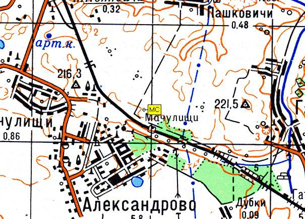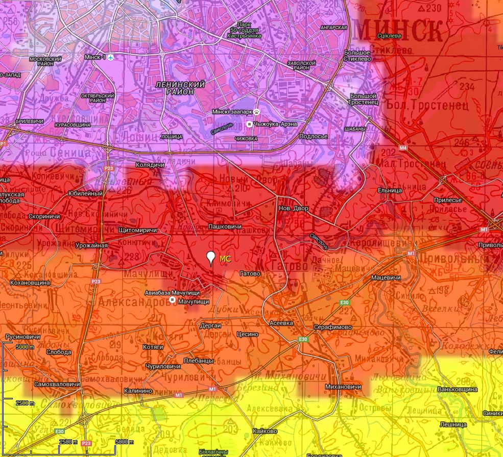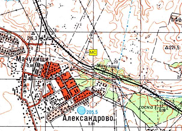 Для того, чтобы попасть на MC, нужно приехать на электричке из Минска до о.п. Мачулищи, обойти здание о.п. справа и по просёлочной дороге через пролесок выйти в поле - это и есть MC. Центральная часть поля в направлении северо-северо-запада самая высокая, перепад рельефа хорошо заметен.