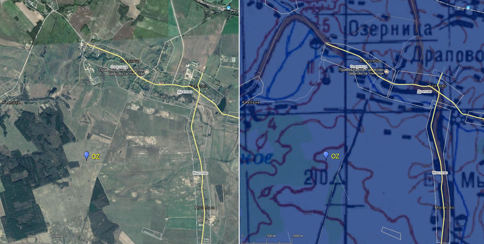 Наблюдательная площадка OZ была разведана в ходе 25-й "Одиссеи" в поисках тёмных астроплощадок в январе 2018 г. Площадка находится на высоких холмах, значительно возвышающихся над уровнем деревни Озерница. Деревня находится на сеевере, хорошо освещена всю ночь.