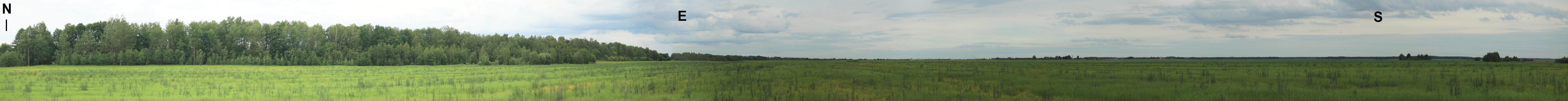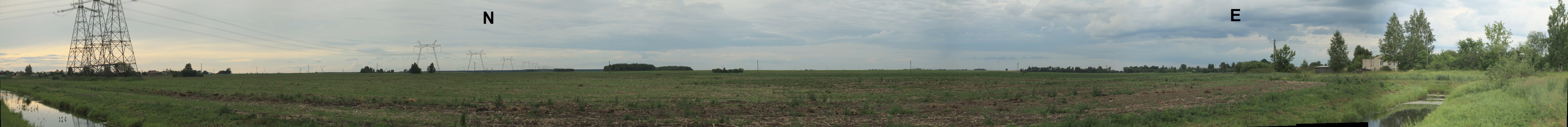 Ниже приведена 180°-панорама северной площадки. Проходу вглубь поля мешает широкий канал, который можно обойти с северо-запада (через 470 м от моста через канал).