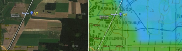 Если перейти ж/д пути от здания станции по ходу движения электрички, то пройдя ж/д переезд дорога выводит в поле -- это и есть VT.