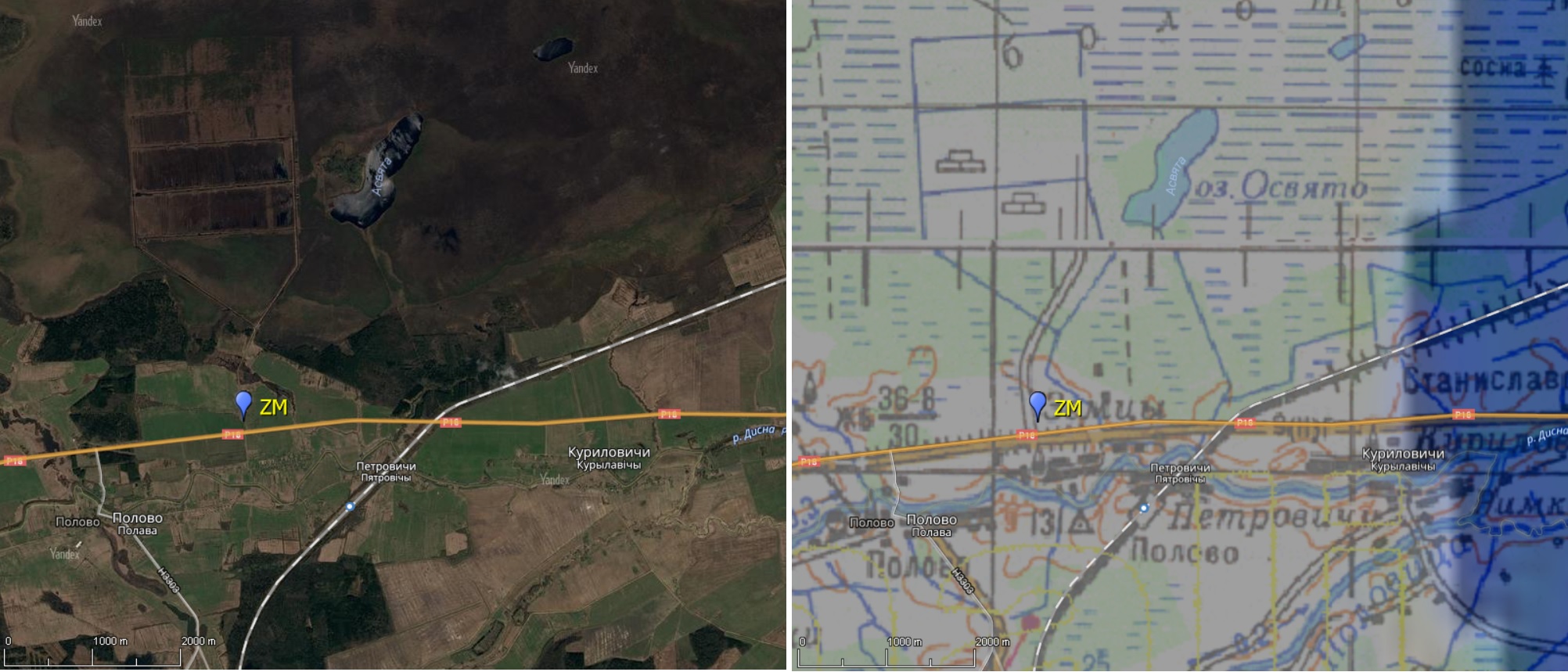 Наблюдательная площадка ZM была разведана в ходе большого автопробега (~620 км) 21-22 октября 2017 г. по тёмным площадкам запада Витебской области. Площадка находится вблизи трассы Козяны - Шарковщина (Р18). На север от площадки находится лес, за ним -- болота вокруг оз. Освято, на юг от площадки -- р. Дисна. На площадку есть удобный съезд с трассы.
