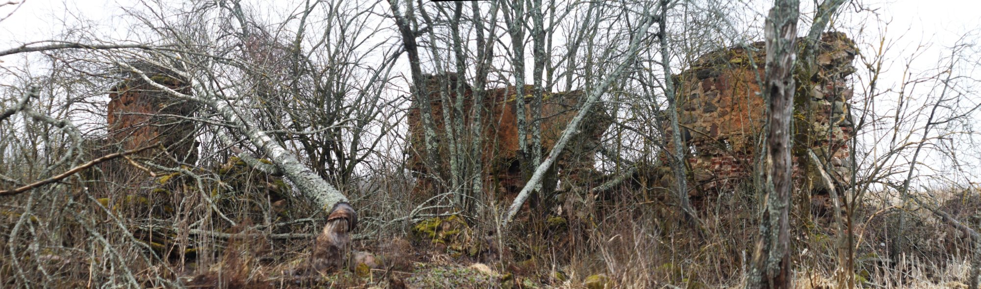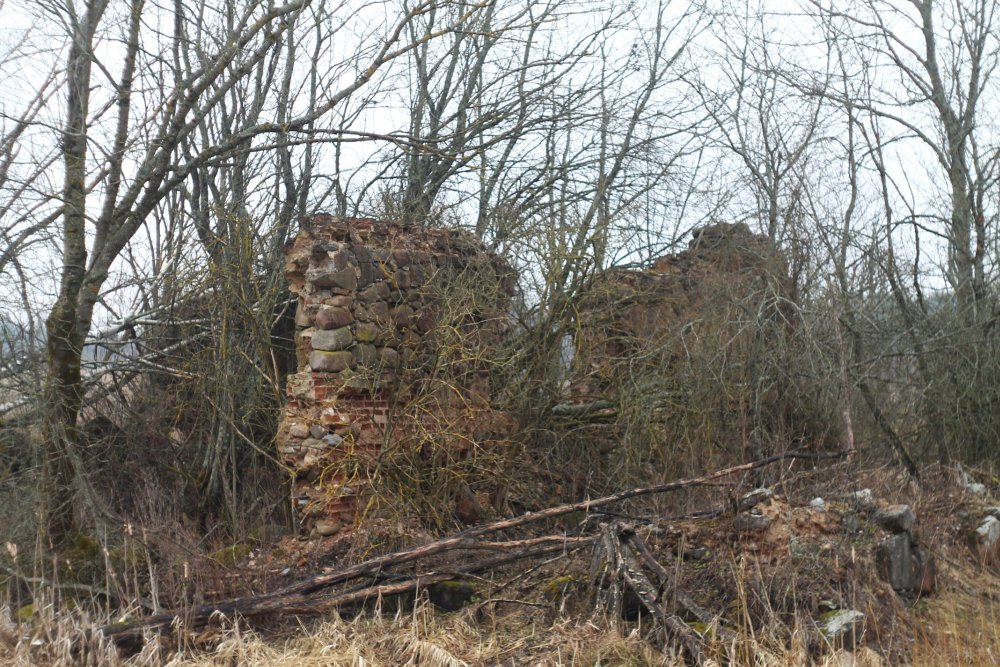 В качестве дополнительной нагрузки было решено посетить остатки родового имения Снарских Старая Жосна XIX в., а также руины католической часовни XVII в., взорванной в 50-х гг. XX в. Слева от шоссе виднелись руины имения (точка 3).
