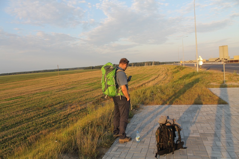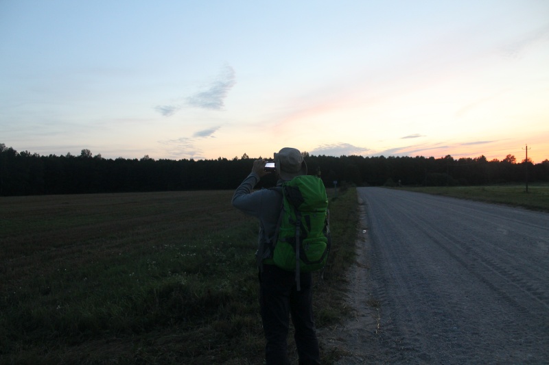 В ходе этой, 28-й по счёту, Одиссеи было пройдено 23,5 км. Площадка получила обозначение LN согласно классификации минской группы наблюдателей "Infinty", удалённость от Минска -- 98 км. Со списком остальных Одиссей можно ознакомиться на странице нашего сайта, посвящённой загородным наблюдательным площадкам. Ниже небольшой отчёт. После изнуряющей одиссеи №16 (см. "Шестнадцатая Одиссея: "Бакшты, или дикие западные Налибоки") у меня оставалась моральная неудовлетворённость -- согласно картам засветки на западе Налибокской пущи должно быть пятно серой зоны засветки диаметром около 15 км, а замеры засветки в центре этого пятна показали значительную засветку. Может это была локальная засветка, дуло могло усугубить повышенная влажность... В общем, дисбаланс между измерениями и картой был слишком велик, чтобы я успокоился. Тем более, что к 2018 г. накопилась достаточная статистика, чтобы верить карте засветки 2016 г. Потому было решено исследовать этот регион снова, но уже его западную часть -- там как раз нашлось несколько полей. Одиссея началась вечером 13 августа 2018 г. Компанию мне составил Вова (Pova), который до того уже участвовал в двух одиссеях. В Минске сели на маршрутку до Гродно -- она как раз едет мимо Бакшт, и далее мимо поворота на д. Лежневичи. Туда нам и надо было. Через часа 1,5 мы были на месте. После высадки, последние приготовления к экспедиции. Позади дорога на Минск. Точка LN1.