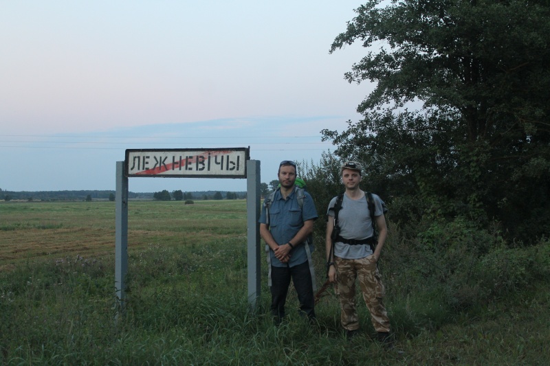 В конце деревни сделали традиционное фото, дальше начинаются исследования полей. ![]() Вова (Pova, слева) и Виталик (Lupus) в конце д. Лежневичи. Точка LN8.