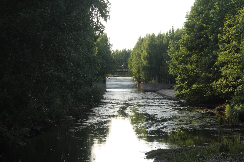 С моста с левой стороны видны быстротоки, по которым осуществляется резкий спуск потока воды на более нижний уровень. ![]() Вид на быстротоки с моста.