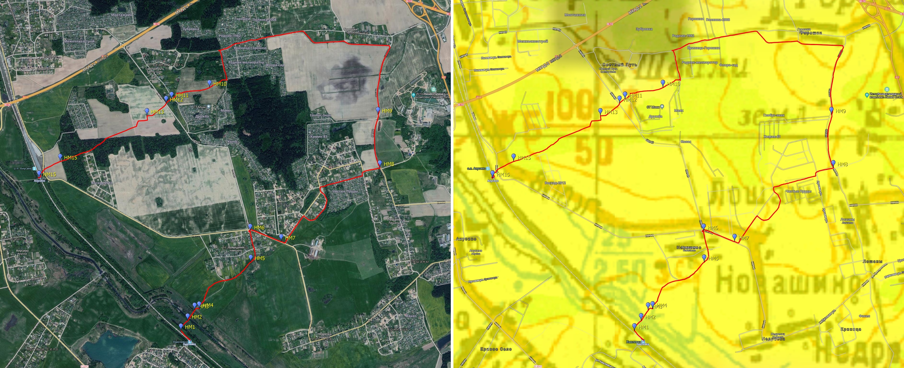 В ходе этой, 33-й по счёту, Одиссеи было пройдено 11 км. Площадка получила обозначение HM согласно классификации минской группы наблюдателей "Infinty", удалённость от Минска -- 25 км. Со списком остальных Одиссей можно ознакомиться на странице нашего сайта, посвящённой загородным наблюдательным площадкам. Ниже небольшой отчёт. Ниже показан трек одиссеи с отмеченными особыми точками, на которые будут ссылки в тексте. Очередная одиссея началась вечером 6 июля 2019 г. как продолжение цикла разведок площадок недалеко от Минска. Основной упор делался на холмистость мест наблюдения, чтобы избежать влияния туманов. В 20ч10м я был уже на месте и начал обследовать северо-восточные окраины о.п. Хмелевка. ![]() Станция Хмелевка.