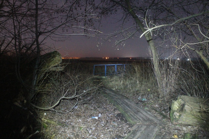 Выйдя к ж/д путям и перейдя их, я пошёл на платформу. Станция представляет собой "остров", по обоим сторонам окружённая путями. Я начал искать проход к полю через лесополосу. Найдя тропинку я вышел к мостику через овраг. ![]() Мост в перелеске к полю NG, точка EN14.