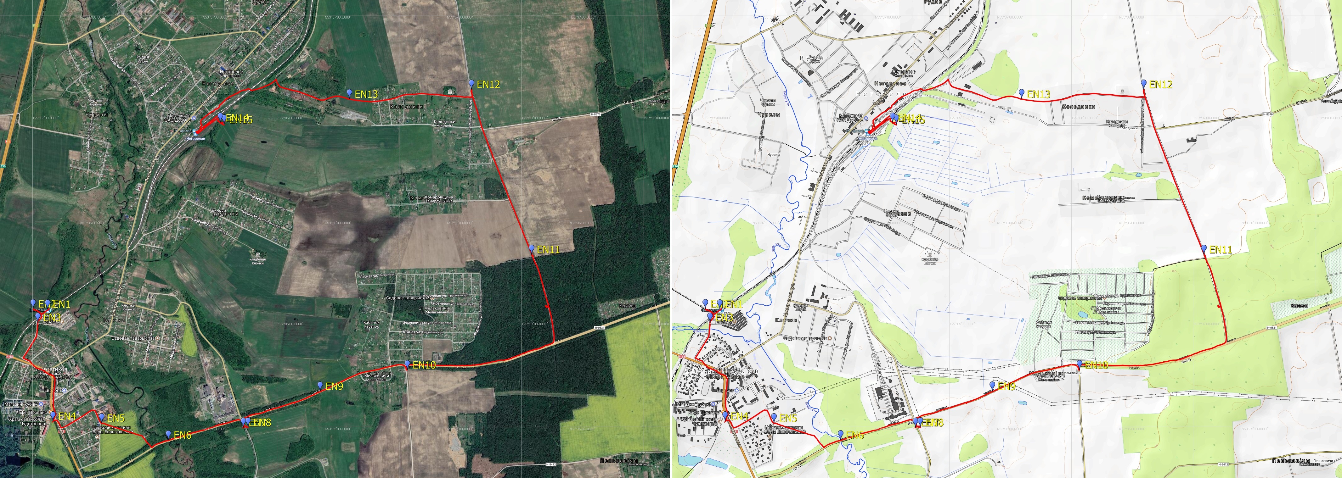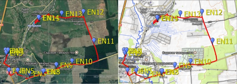 Я для себя наметил "петлю одиссеи" через посёлок Энергетиков, потом на восток в леснолй массив за д. Мельковичи, оттуда на север до д. Колодники и затем на запад к ст. Негорелое. Но для начала я отправился через посёлок по ул. Маяковского к его южной оконечности. ![]() Дорога в посёлок Энергетиков, точка EN3.