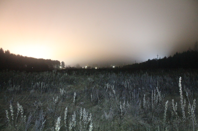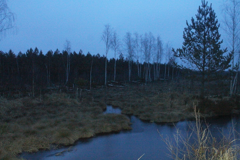 Миновав канаву Синька и пройдя 4 км, я вышел к первой поляне. Место действительно тёмное, потому как пейзаж не особо просматривается на фотографиях при экспозиции 30 с и ISO6400... ![]() Поляна вблизи канавы Синька, точка VH7. Кадр в направлении севера.