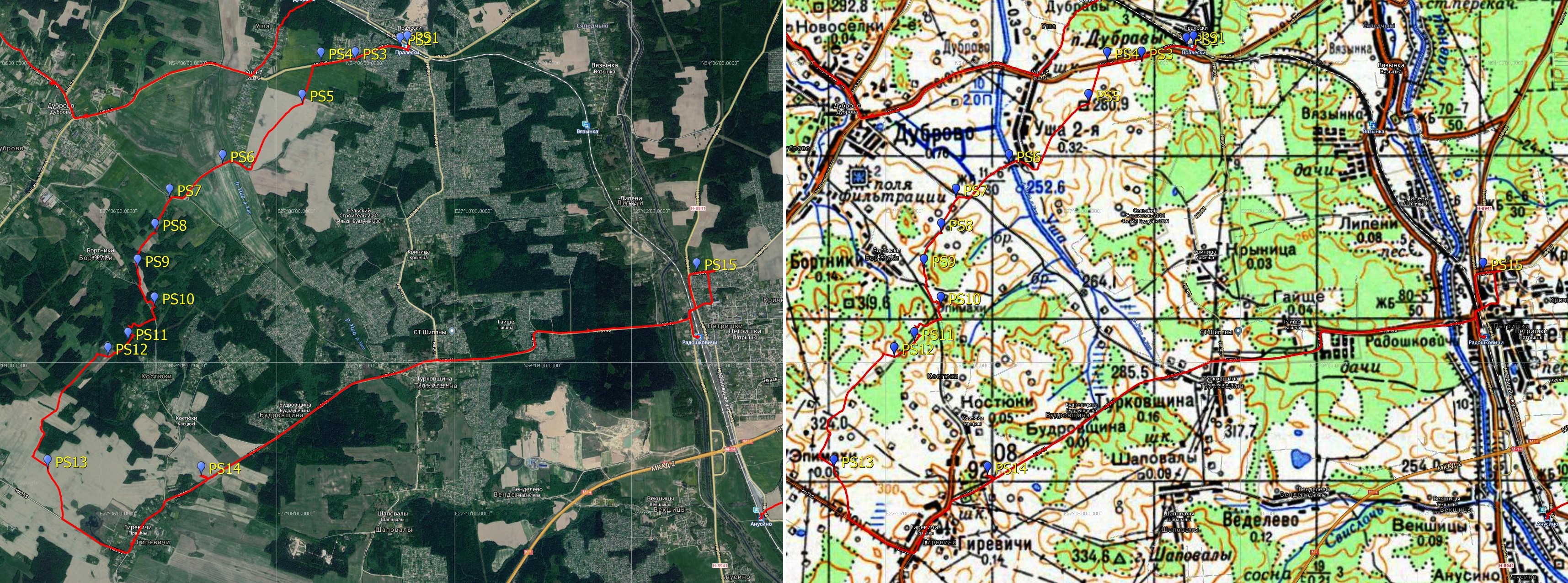 | В ходе этой, 42-й по счёту, Одиссеи было пройдено 21,5 км. Площадка получила обозначение PS согласно классификации минской группы наблюдателей "Infinty", удалённость от Минска -- 35 км. Со списком остальных Одиссей можно ознакомиться на странице нашего сайта, посвящённой загородным наблюдательным площадкам. Ниже небольшой отчёт. Ниже показан трек одиссеи с отмеченными особыми точками, на которые будут ссылки в тексте. Продолжая разведку "ближнего круга" потенциальных площадок вокруг Минска в досягаемости пригородным транспортом, я решил съездить в третью в 2020 г. одиссею, и третью за январь. Выбор пал на Молодечненское направление, участок ж/д от ст. Радошковичи до о.п. Пралески. Между этими станциями находится ст. Вязынка, рядом с которой -- дом, где родился классик белоруской литературы Янка Купала. Места эти мне знакомы с детства, а точку наблюдения VZ мы разведали в августе 2008 г. (см. "Выезд 16-17 августа в Вязынку. Тестирование третьей модификации УРАН-М."), в самый первый год "одиссейства". Рядом с о.п. Пралески находится ст. Дубравы -- конечный пункт 14-й одиссеи "Станция Романы, или штормовые холмы", в которую меня сначала изрядно пожарило солнце при переходе через холмы, а потом вымочило до нитки ливнем рядом с Западной Березиной. На обратном пути накрапывал дождик, и поля рядом со станцией Дубравы мне показались тогда малопривлекательными с точки зрения потенциального места для наблюдений. Потому фотографий этих мест я не делал. Кстати, нужно будет это исправить... Начать одиссею было решено с о.п. Пралески. В 5-м часу вечера 26 января 2020 г. я приехал на электричке на эту станцию. ![]() о.п. Пралески, точка PS1.