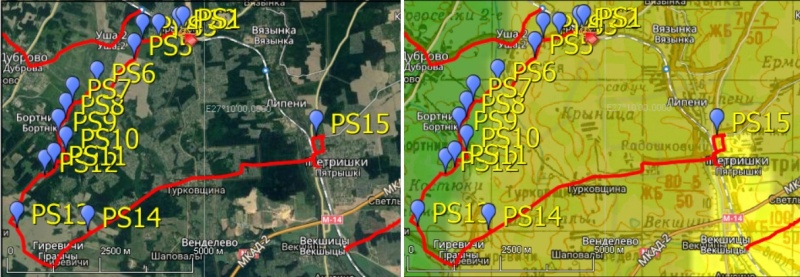 Снега не было (это была первая зима без снега). На станции и в деревне было довольно многолюдно. Путь мой лежал на юго-запад, где в 7 км отсюда на высоких холмах разместилась д. Эпимахи. А пока я перешёл пути и направился по шоссе Н9120 через лесок в горку. ![]() Путь от о.п. Пралески к полю PS. Точка PS2.
